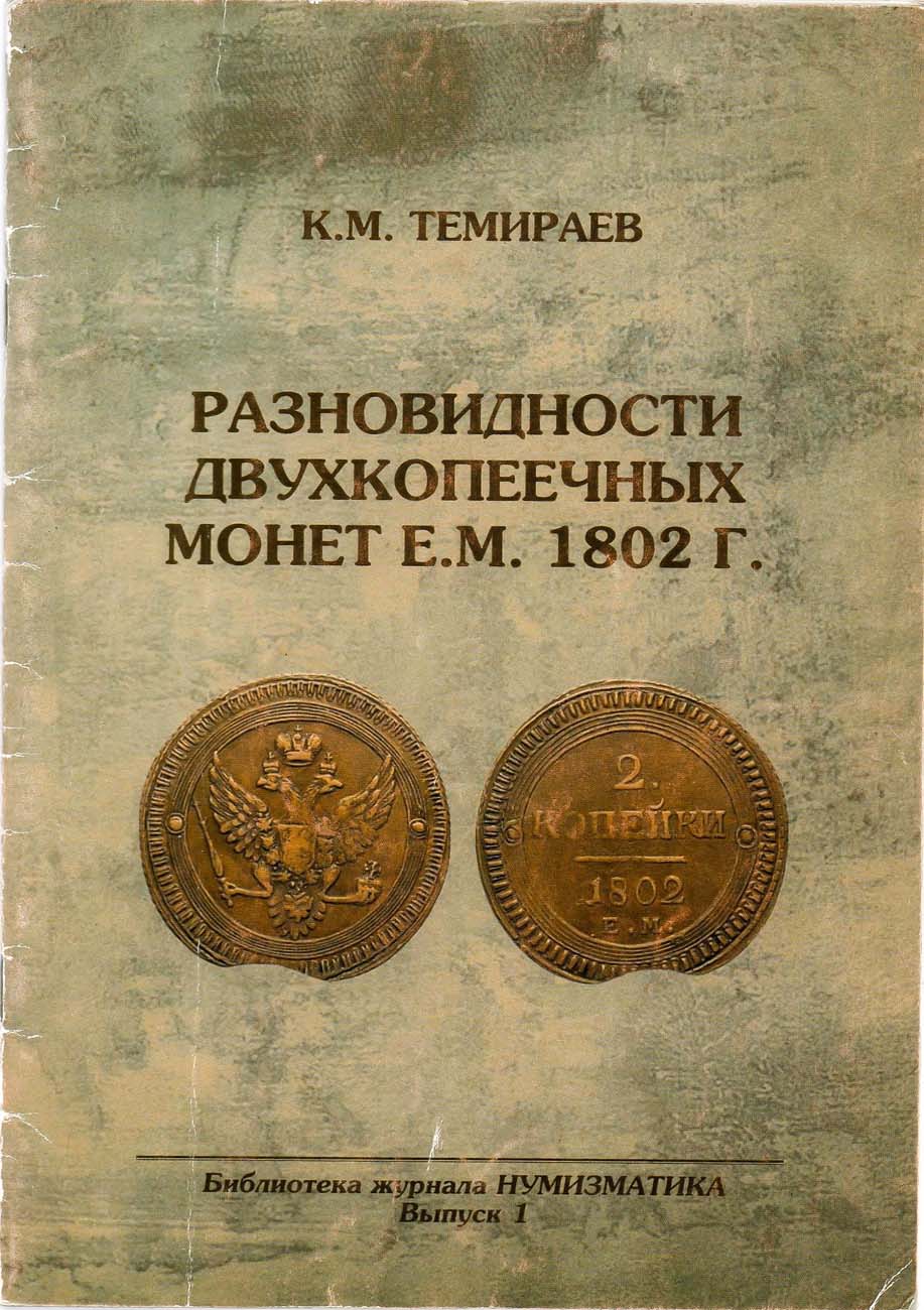 Москва, 2010 г. 24 стр. Тираж 500 экз. Из библиотеки журнала" Нумизматика", выпуск 1. Автором выделено более 100 разновидностей 2 копеек 1802 года "ЕМ".