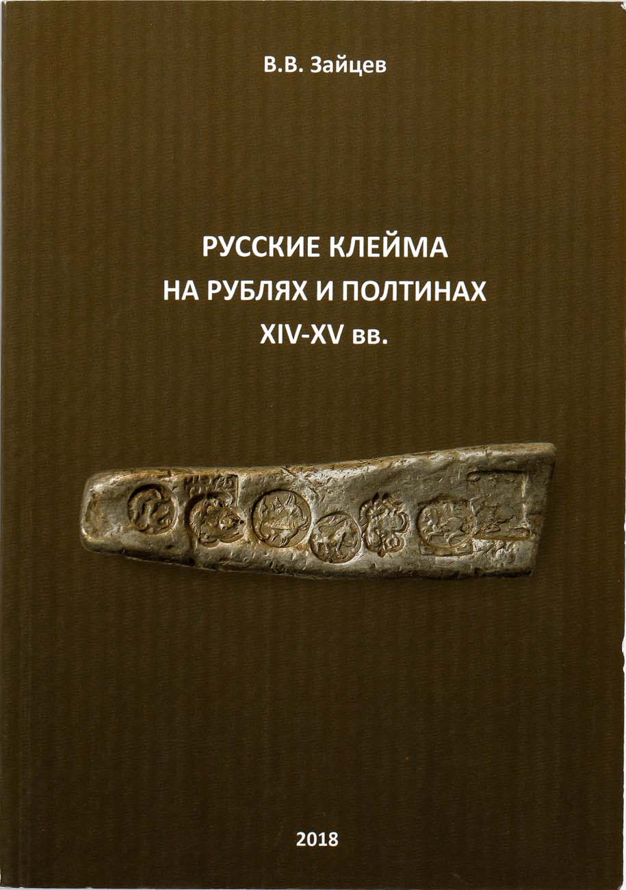 Москва, 2018 г. 84 стр. Тираж 500 экз. В книге приводится краткий очерк клеймения на Руси в XIV- первой половине XV в. серебряных платежных слитков (рублей и полтин), даются основы систематизации клейм. Каталог включает все известные на момент выхода типы русских клейм с обозначением их датировки и с указанием на принадлежность тому или иному княжеству или правителю.