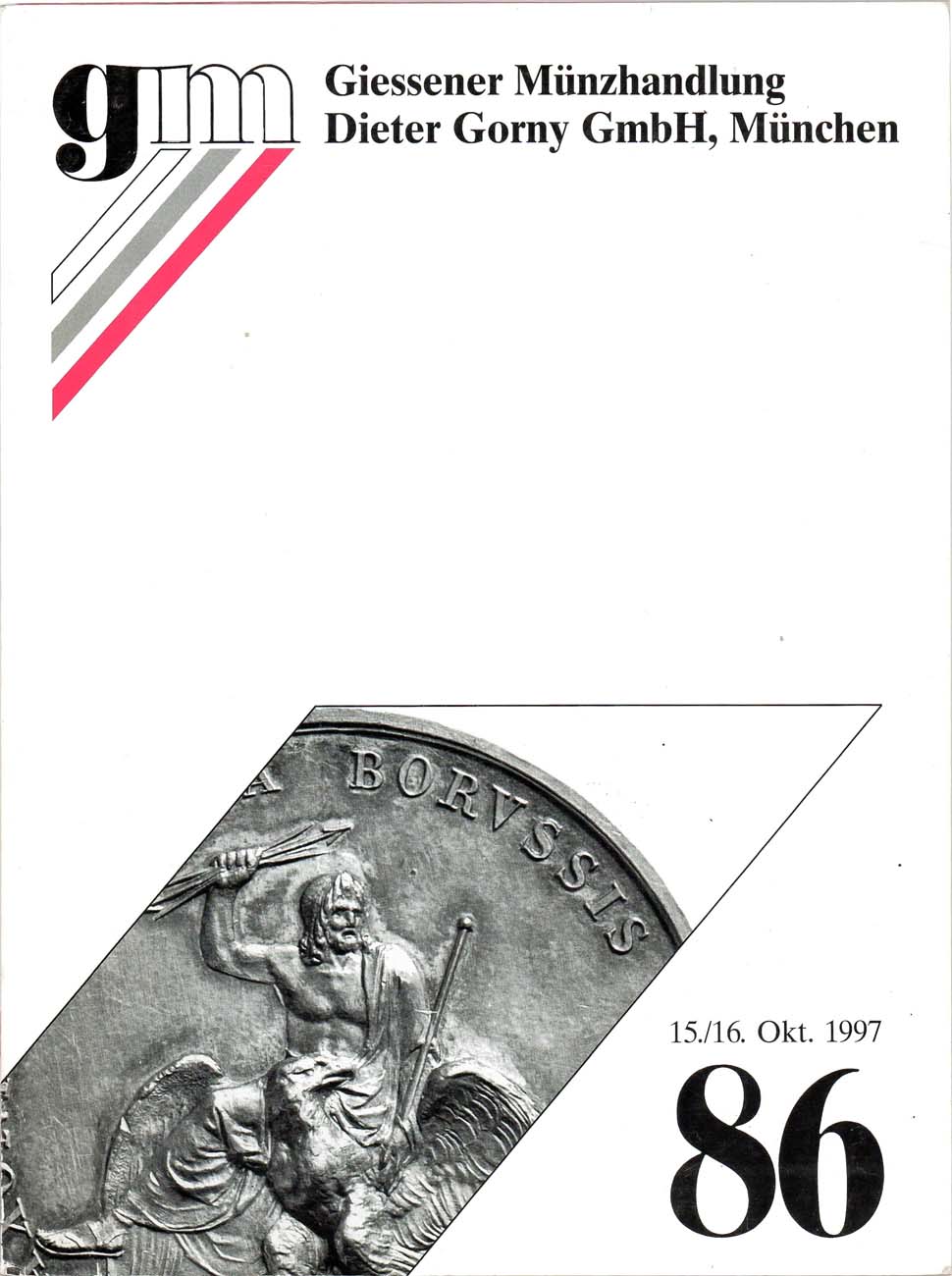 Мюнхен, 15-16 октября 1997 года. 2048 лотов. 1099 лотов русских монет, медалей и орденов. Отдельно выделена выдающаяся по редкости коллекция медных монет в 644 лота. Среди топ-лотов: квадратные платы1726 года, сестрорецкий рубль, пробные 5 злотых 1818 года, золотая медаль 1894 года на смерть Александра III.