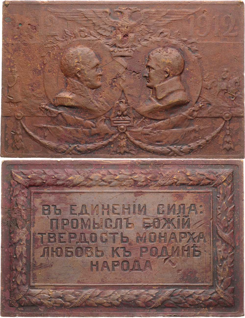 Бронза. 71,98г. Размер 67х44 мм. С.-Петербург, 1912 г. Мастерская (ателье) А.Ф. Жаккара (реверс — справа внизу: "А.Жаккаръ"). Медальер Г.И. Малышев (аверс — справа внизу: "ГМ"). Дьяков 1527.4(R2). XF+/AU.