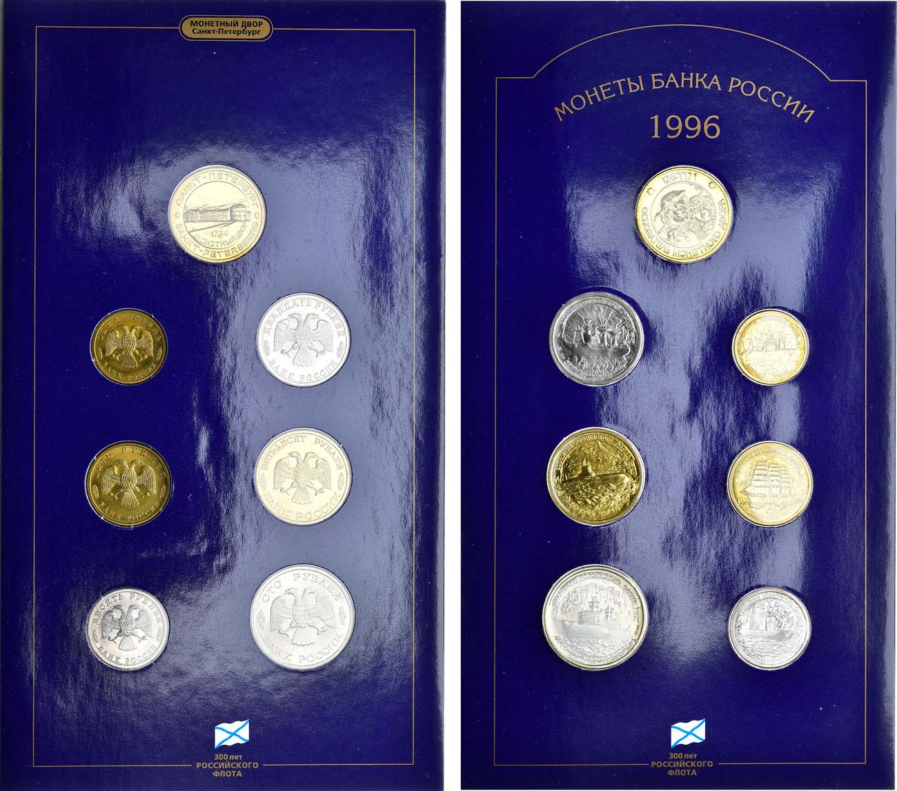 Санкт-Петербургский монетный двор. В набор входят: Жетон СПМД, монеты 1 рубль (Рыболовный траулер), 5 рублей (Рыболовное судно "Товарищ"), 10 рублей (Грузовое судно), 20 рублей (Научно-исследовательское судно), 50 рублей (Подводный крейсер), 100 рублей (Атомный ледокол "Арктика"). BU.