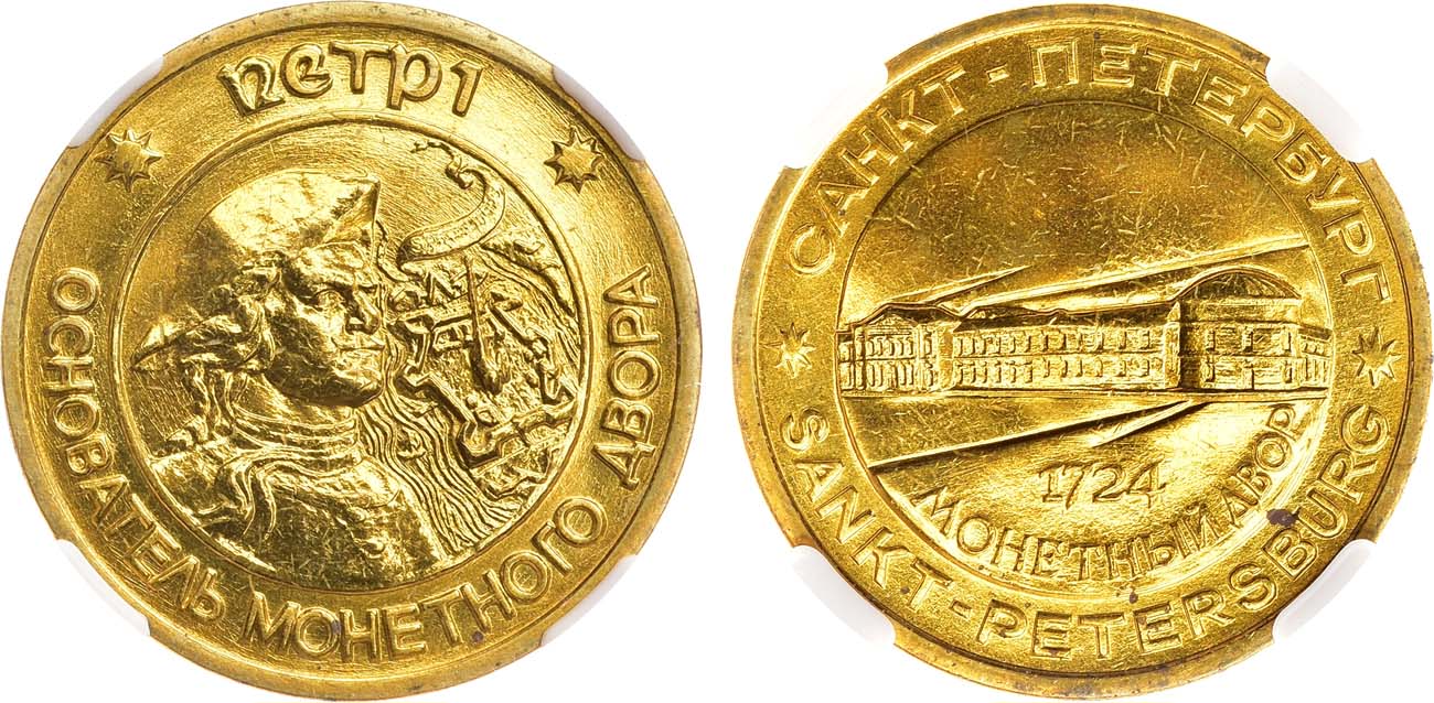 Латунь. Диаметр 25 мм. Санкт-Петербургский монетный двор. MS63.