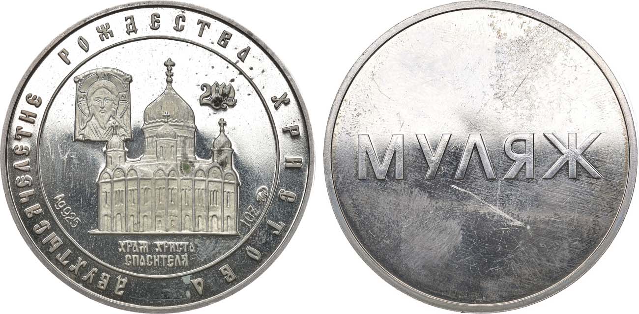 Медно-никелевый сплав. 29,88г. Диаметр 38,5 мм. Московский монетный двор. Аверс: гладкий кружок с надписью "МУЛЯЖ". Реверс: как у тиражной медали. PROOF.