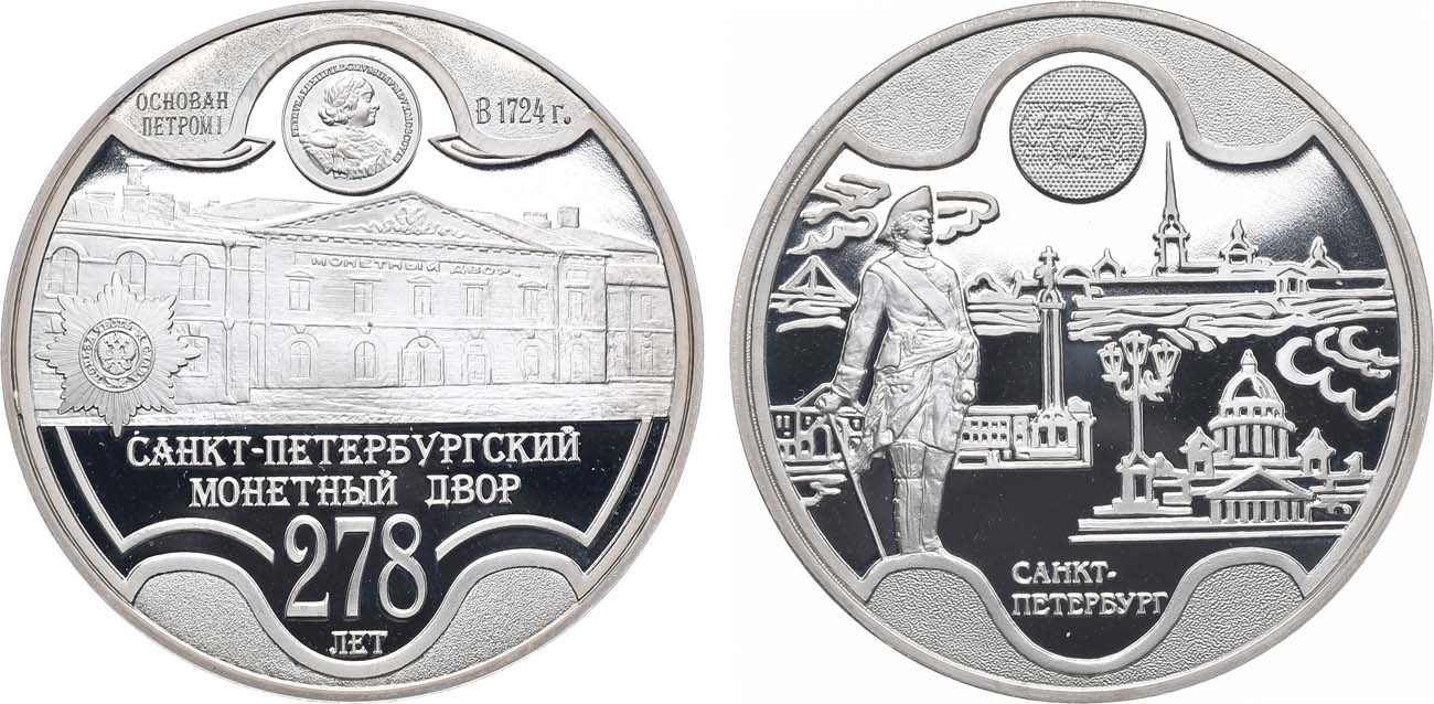 Медно-никелевый сплав. 28,67г. Диаметр 42 мм. Санкт-Петербургский монетный двор. Гурт гладкий. PROOF.