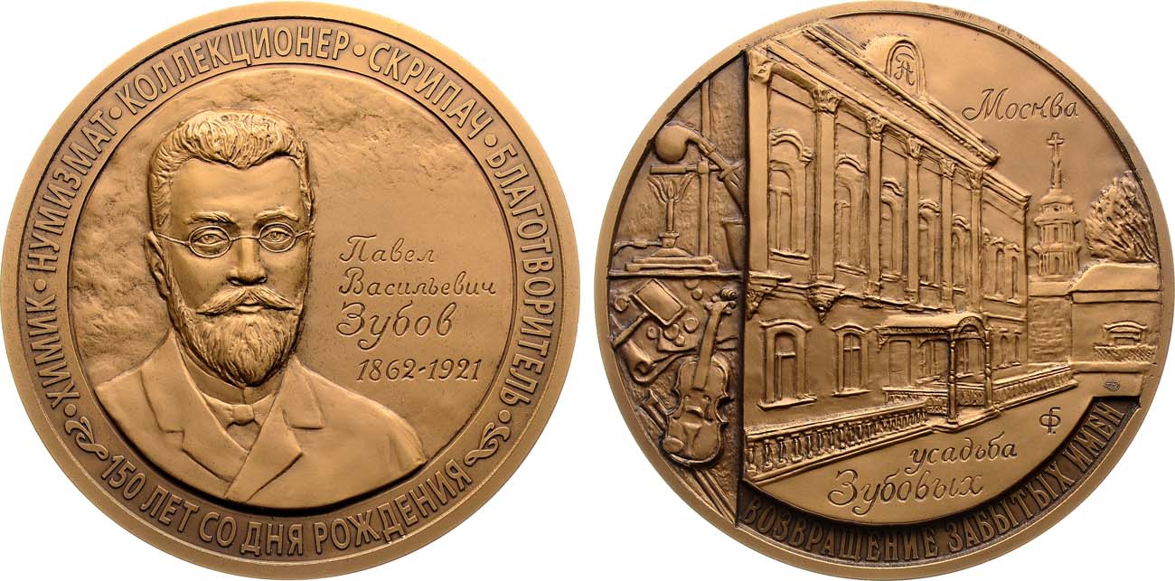 Медаль вложена в оригинальный картонный футляр. Павел Васильевич Зубов (1 марта (13 марта) 1862 — 2 июля 1921) — русский термохимик, нумизмат, скрипач, меценат, библиофил, собиратель монет и медалей.Родился в Москве в семье потомственных почетных граждан Василия Павловича (умер в 1889) и Клавдии Алексеевны Зубовых, владевших красильной фабрикой в городе Александрове.