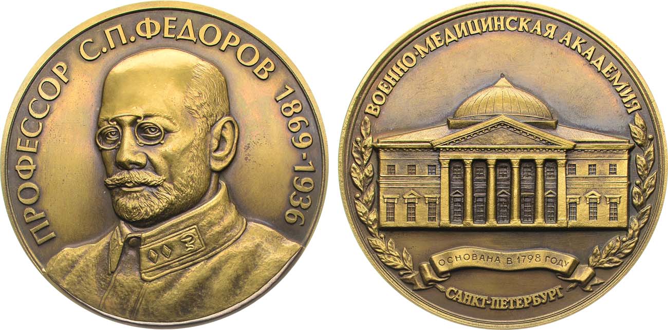 Медаль изготовлена по заказу кафедры абдоминальной хирургии Военно-медицинской академии имени С.М. Кирова.