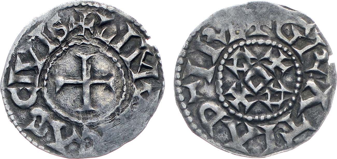 Серебро. 1,52г. Лимож. Аверс: круговая легенда "+GRATIA D-I REX". Реверс: круговая легенда "LIMOVICΛS CIVIS". MEC 974.. XF.