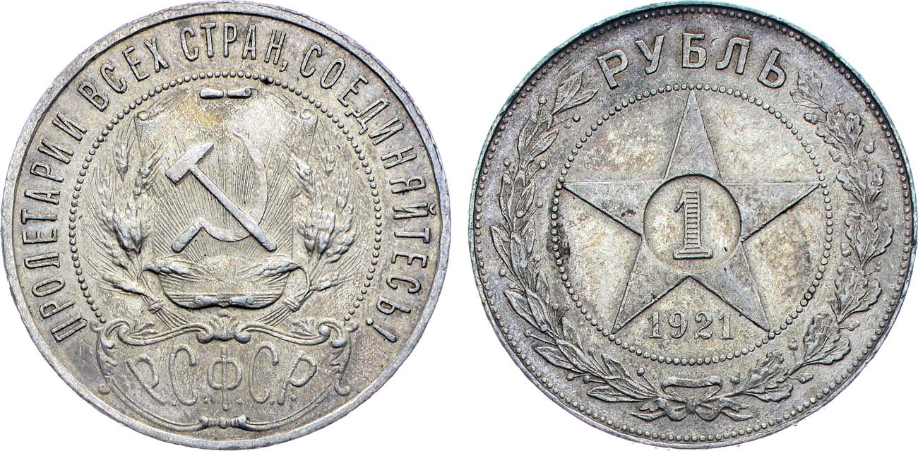 Более редкая штемпельная разновидность рубля 1921 года.