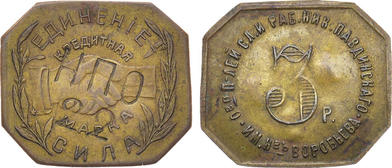 Бронза. 4,81г. Размер: 23х26,2 мм. (Восьмигранник). Реверс: надчекан "НПО-22". Гурт гладкий со следами вырубки. ФедоринVI 34-РДЗ (700 у.е.). AU 55.