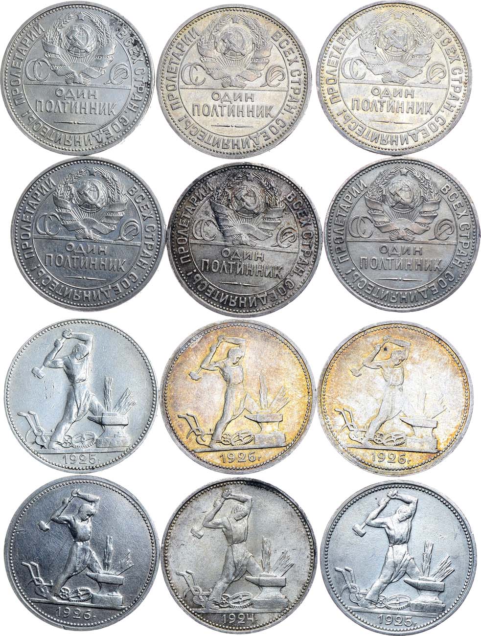 Серебро. Полтинник 1924 года. (ПЛ). Серебро. 9.95 г. Федорин 10 (6 у.е.). AU/UNC. Полтинник 1925 года. (ПЛ). Серебро. 10.02 г. Федорин 19 (6 у.е.). AU. Полтинник 1925 года. (ПЛ). Серебро. 9.96 г. Федорин 21 (6 у.е.). AU/UNC. Полтинник 1926 года. (ПЛ). Серебро. 9.99 г. Федорин 22б (6 у.е.). AU. Полтинник 1926 года. (ПЛ). Серебро. 10 г. Федорин 22б (6 у.е.). AU/UNC. Полтинник 1926 года. (ПЛ). Серебро. 10.02 г. Федорин 22б (6 у.е.). UNC. AU/UNC.
