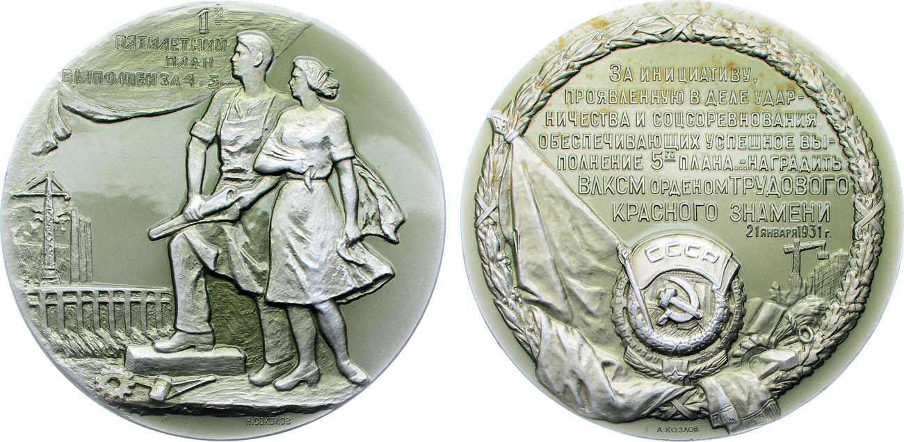 Алюминий, лак. 24,51г. Диаметр 58 мм. Ленинградский монетный двор. Медальеры А.В.Козлов, Н.А.Соколов (на аверсе на 6 часов "А.КОЗЛОВ", на реверсе на 6 часов "Н.СОКОЛОВ"). Шкурко, Салыков 271. AU/UNC.