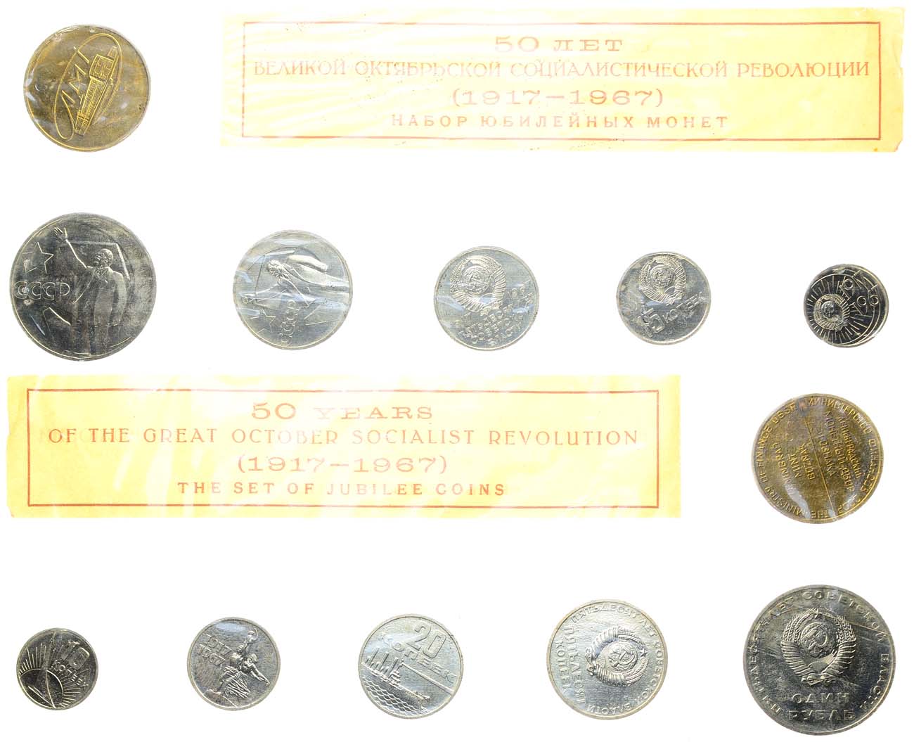 Медно-никелевый сплав. 10 копеек 1967 года. ЛМД. Диаметр 17,27 мм. 1,96 г. Медальер Ю.А. Лукьянов. BUNC. 15 копеек 1967 года. ЛМД. Диаметр 19.56 мм. 3.31 г. Медальер П.Д. Волков. BUNC. 20 копеек 1967 года. ЛМД. Диаметр 21,84 мм. 4,39 г. Медальер В.К. Никитин. BUNC. 50 копеек 1967 года. ЛМД. Диаметр 25 мм. 6,48 г. Медальер И.С. Крылков. BUNC. 1 рубль 1967 года. ЛМД. Диаметр 31 мм. 11,31 г. Медальер И.С. Крылков. BUNC. BUNC.