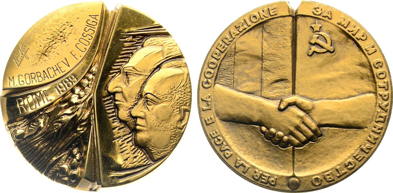 Томпак. 140,26г. Диаметр 60 мм. Италия, Флоренция. Фирма «Пиккиани э Барлакки». Медальеры: аверс — Джорио Виварелли (аверс — подпись вверху слева), реверс — А.В. Бакланов (без подписи). На гурте: №3440. UNC.