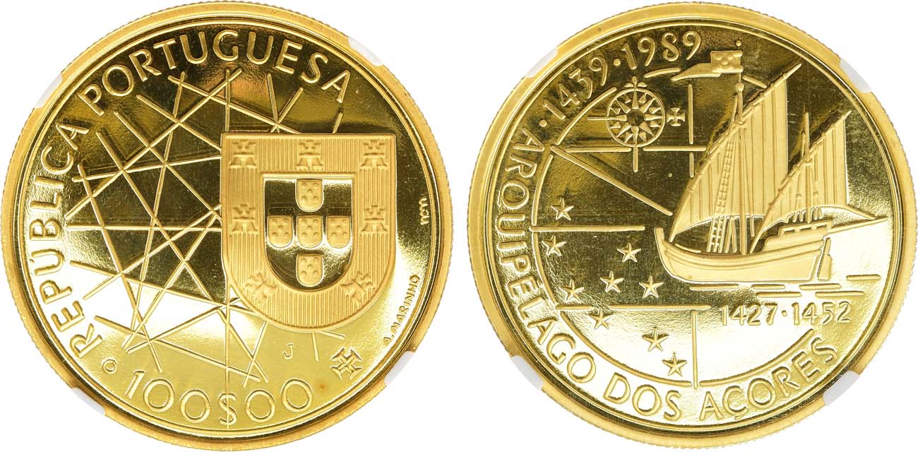 Золото 917 пробы. 24г. Лиссабон (INCM). Тираж 5485 экз. KM 648b. PF 68.