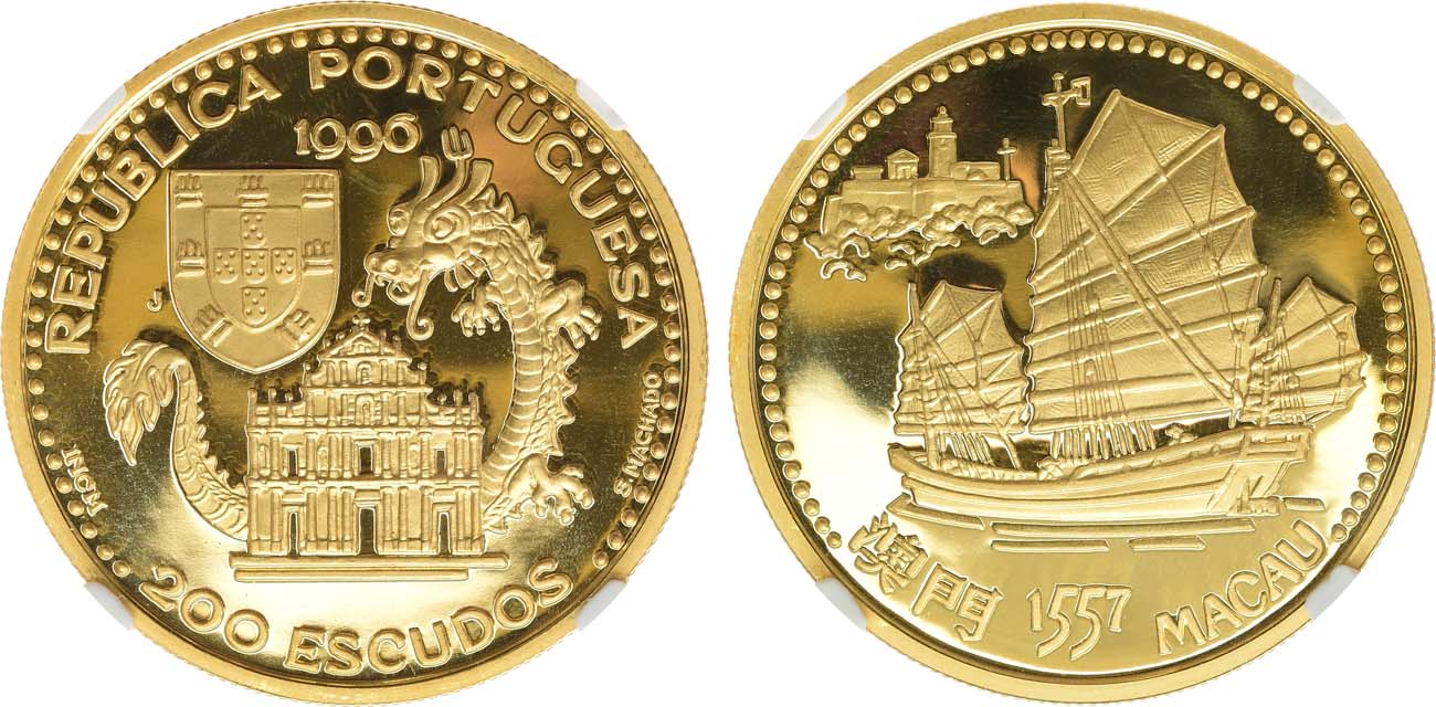 Золото 917 пробы. 27,2г. Лиссабон (INCM). KM 691b. PF 68.