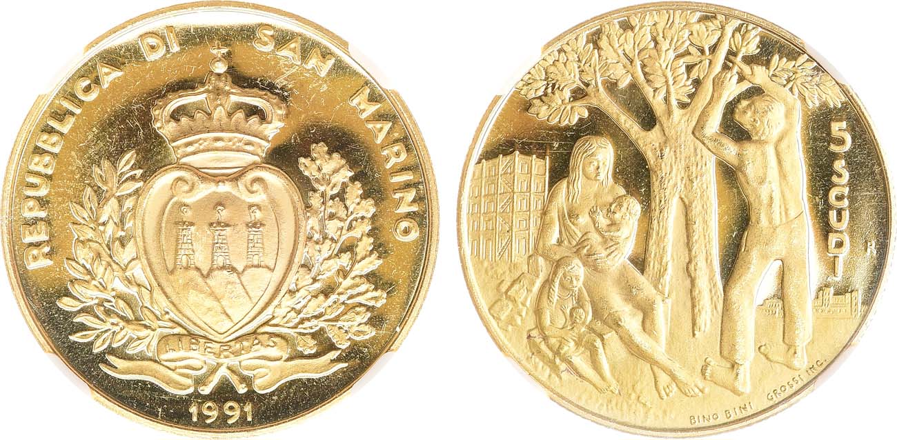 Золото 917 пробы. 16,96г. Рим. Тираж: 7000 экз. KM 275. PF 65.