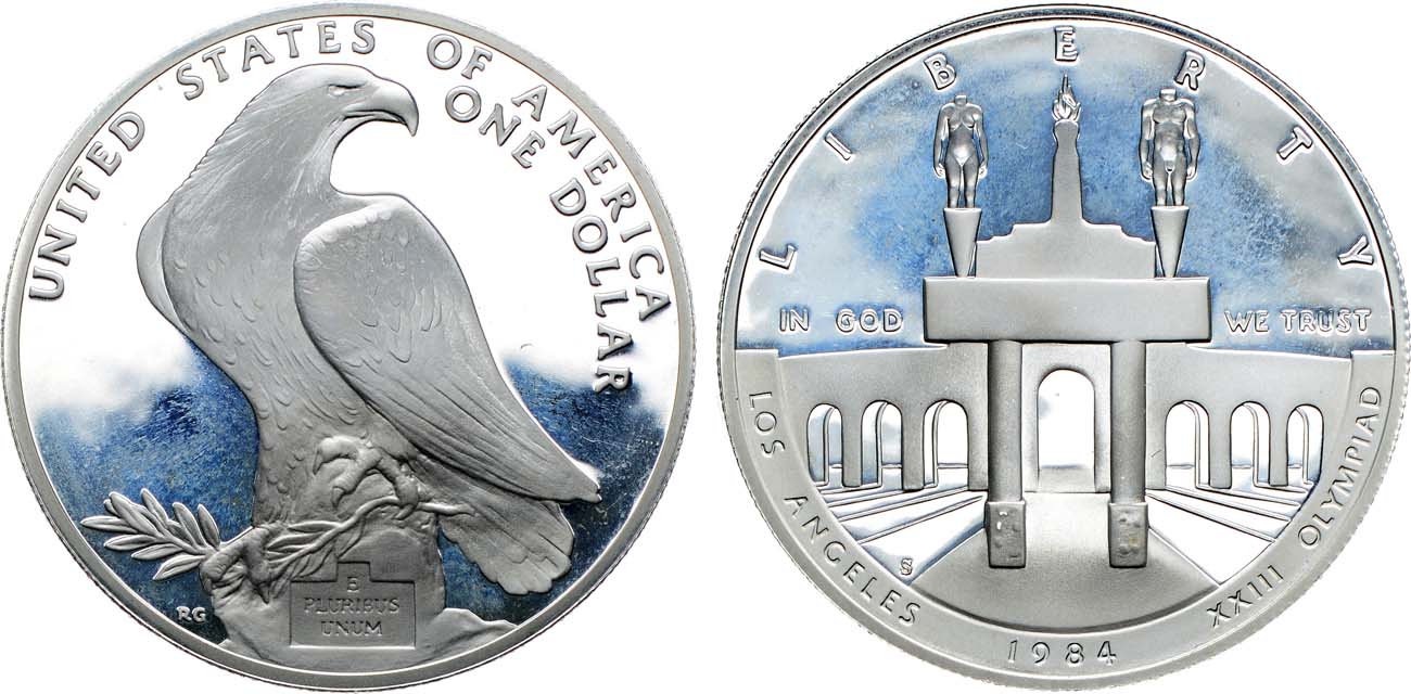 Серебро 900 пробы. 26,73г. Сан-Франциско (S). KM 210. PROOF.