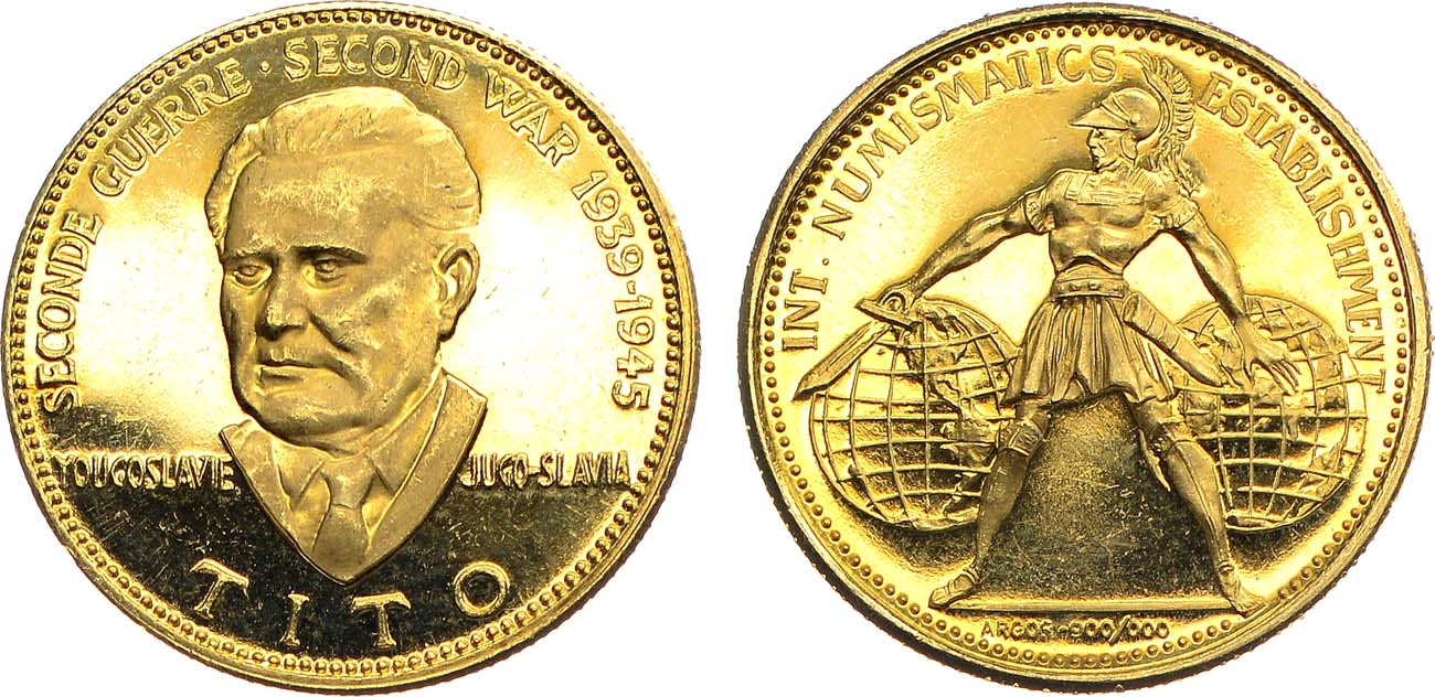 Золото 900 пробы. 6,97г. Диаметр 21 мм. Без определения монетного двора. Серия "Выдающиеся личности второй мировой войны" PROOF.