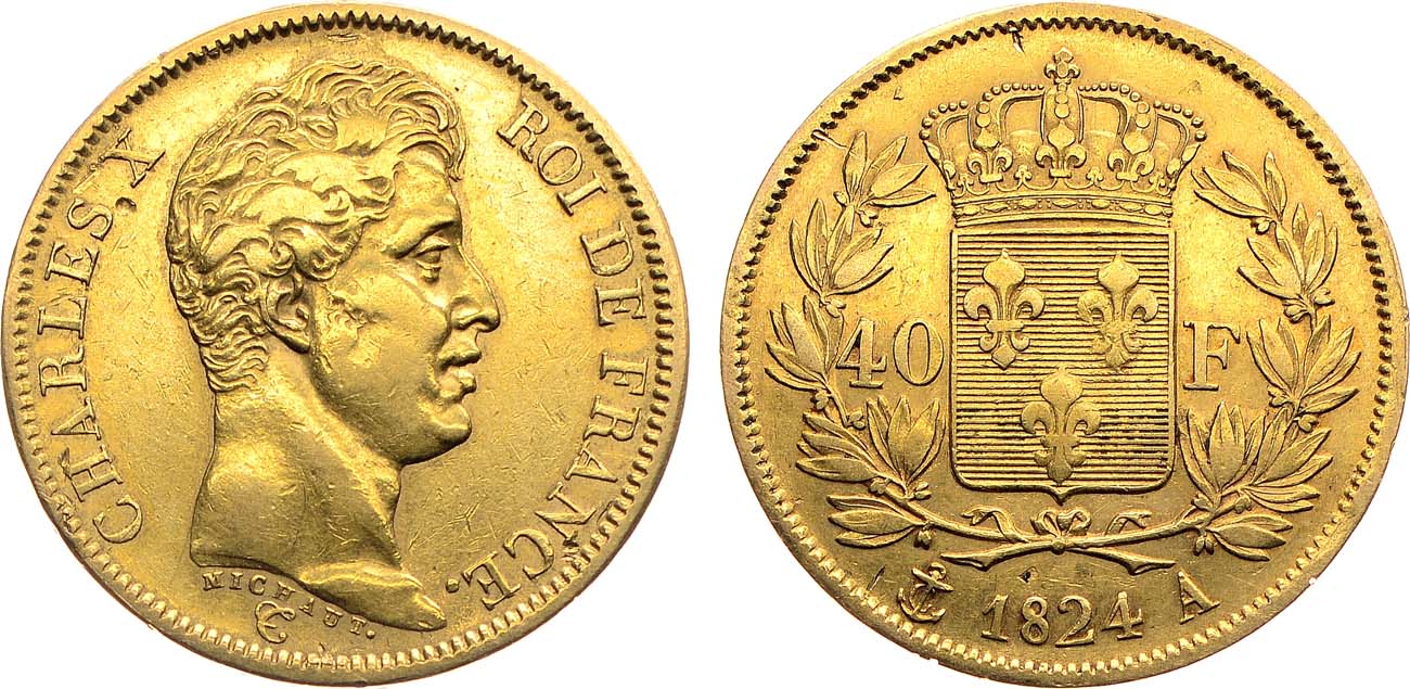 Золото 900 пробы. 12,81г. Париж (А). Le Franc 543.1. XF/AU.