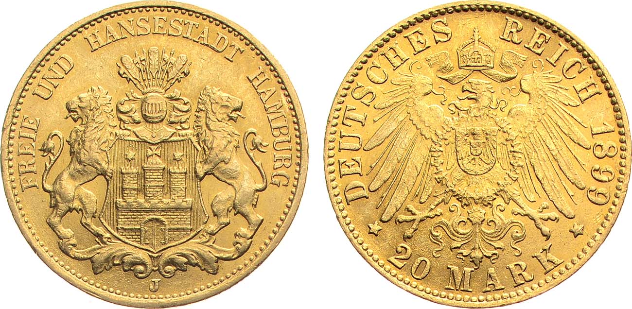 Золото 900 пробы. 7,94г. Гамбург (J). KM 618. AU.