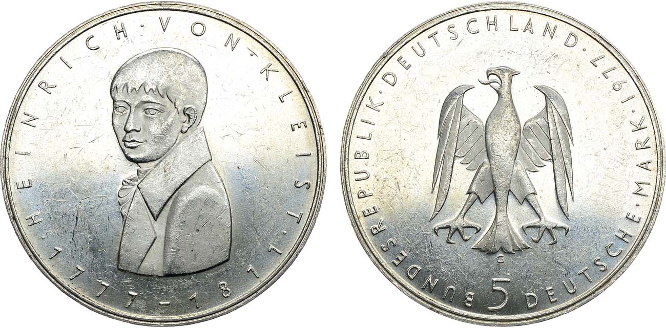 Серебро 625 пробы. 11,25г. Карлсруэ (G). Тираж 7741080 экз. KM 146. UNC-.