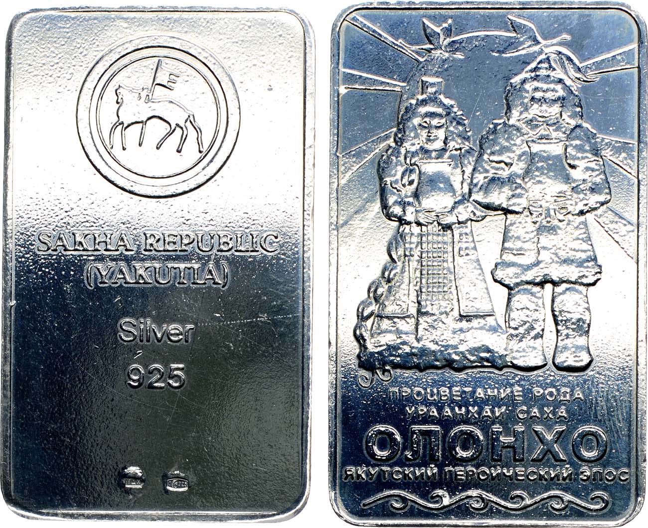 Серебро 925 пробы. 50,44г. Размеры 45х27 мм. Россия, неизвестное производство. Клейма на аверсе: 1. Фирменное "ТДК". 2. Пробирное "Д / женская голова в кокошнике вправо / 925". AU/UNC.