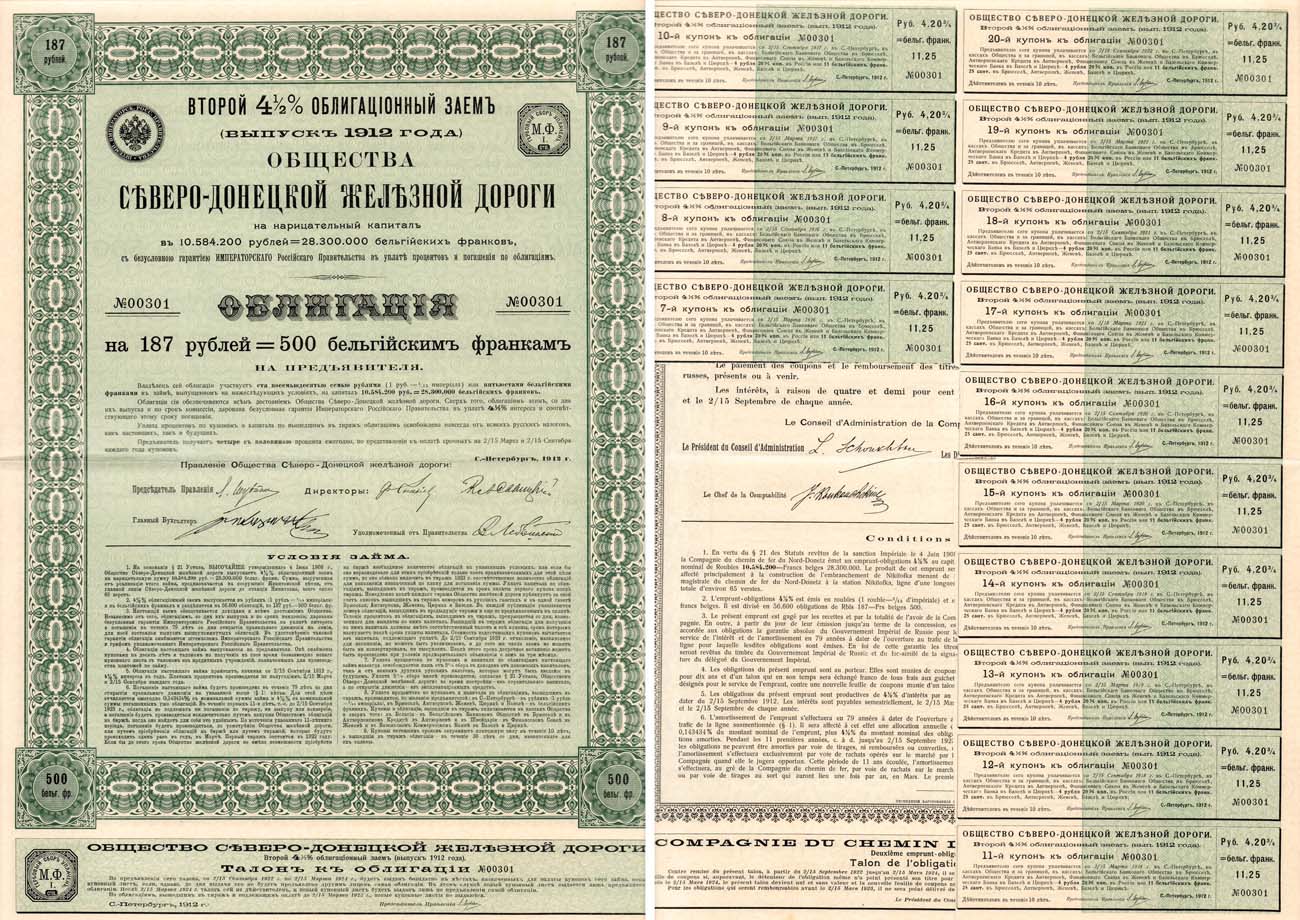 №00301. На предъявителя. С купонным листом на 14 купонов (№7-20). Иванкин 57.2. (30 у.е.). AU.