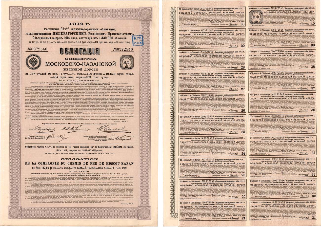№0372546. На предъявителя. С купонным листом на 30 купонов (№11-40). Иванкин 34.60 (20 у.е.). AU.