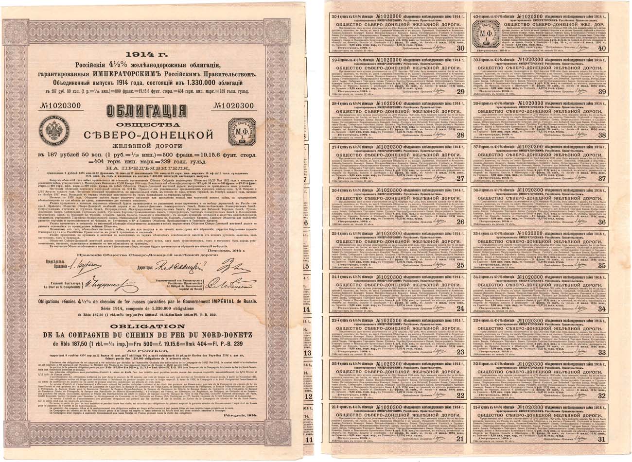 №1020300. На предъявителя. Купонный лист с 31 купоном (№10-40). Иванкин 57.3 (30 у.е.). AU.