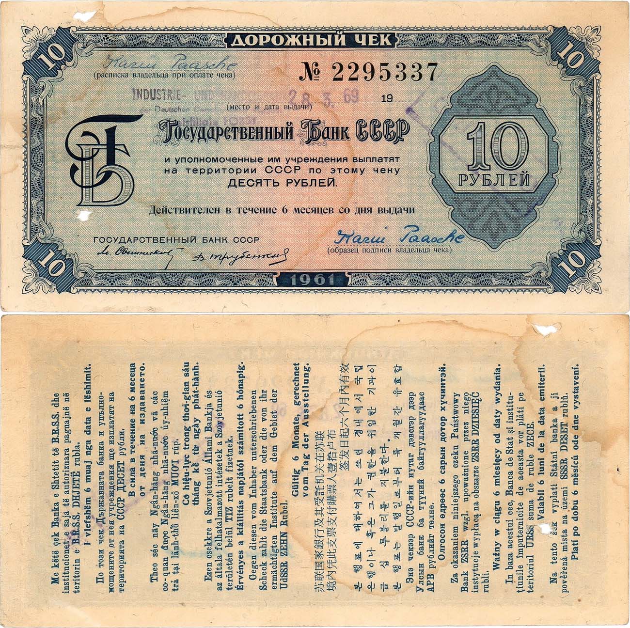 Текст оборота на 11 языках. Погашен 28 марта 1969 года в ГДР. Рябченко 26007р. XF.