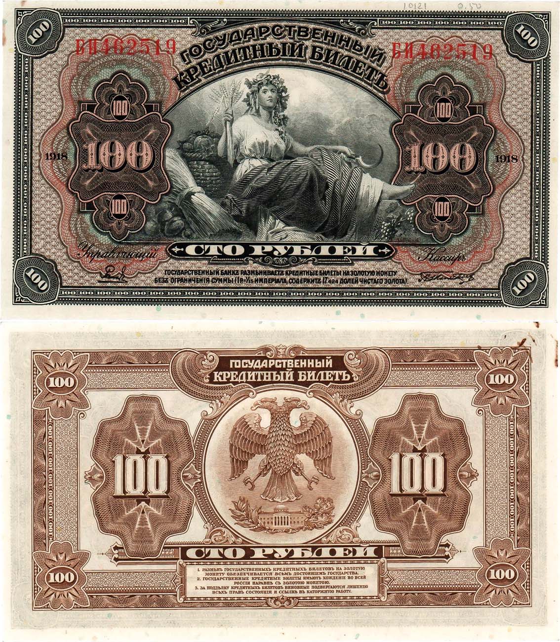 Временным правительством были заказаны в США (в ABNCo) Государственные кредитные билеты номиналами 50 копеек, 25, 50, 100, 250, 500 и 1000 рублей. Билеты 50 копеек и 25 и 100 рублей стали поступать в Россию только в 1918 году и использовались в качестве денежных знаков различными правительствами в Сибири на Дальнем Востоке.