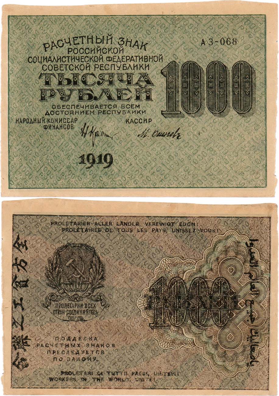 Серия АЗ-068. Подписи: Наркомфин Крестинский, кассир М. Осипов. ZG2. №2.5.17. aUNC/UNC.