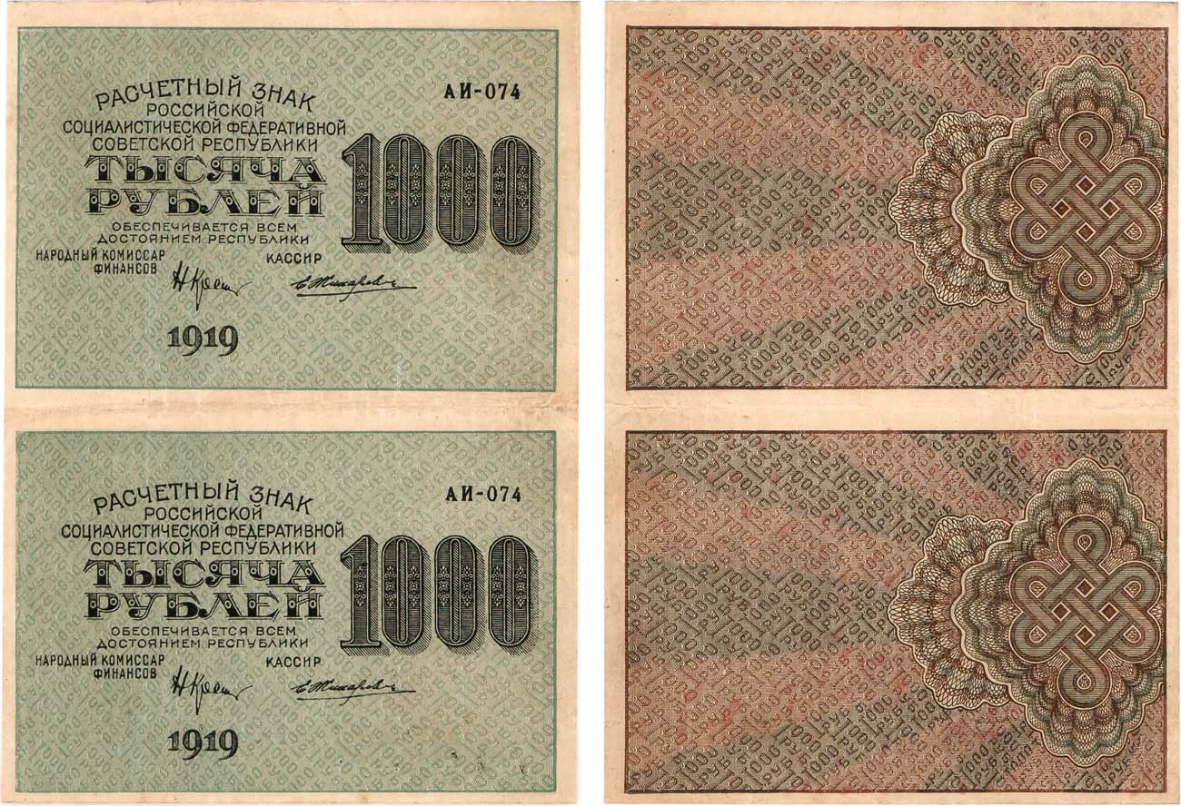 Серия АИ-074. Подписи: Наркомфин Крестинский, кассир Е. Жихарев. Водяной знак "Цифры номинала" (1000). Брак оборотной стороны- не пропечатан текст. Подобна ZG№2. 2.5.12. XF.