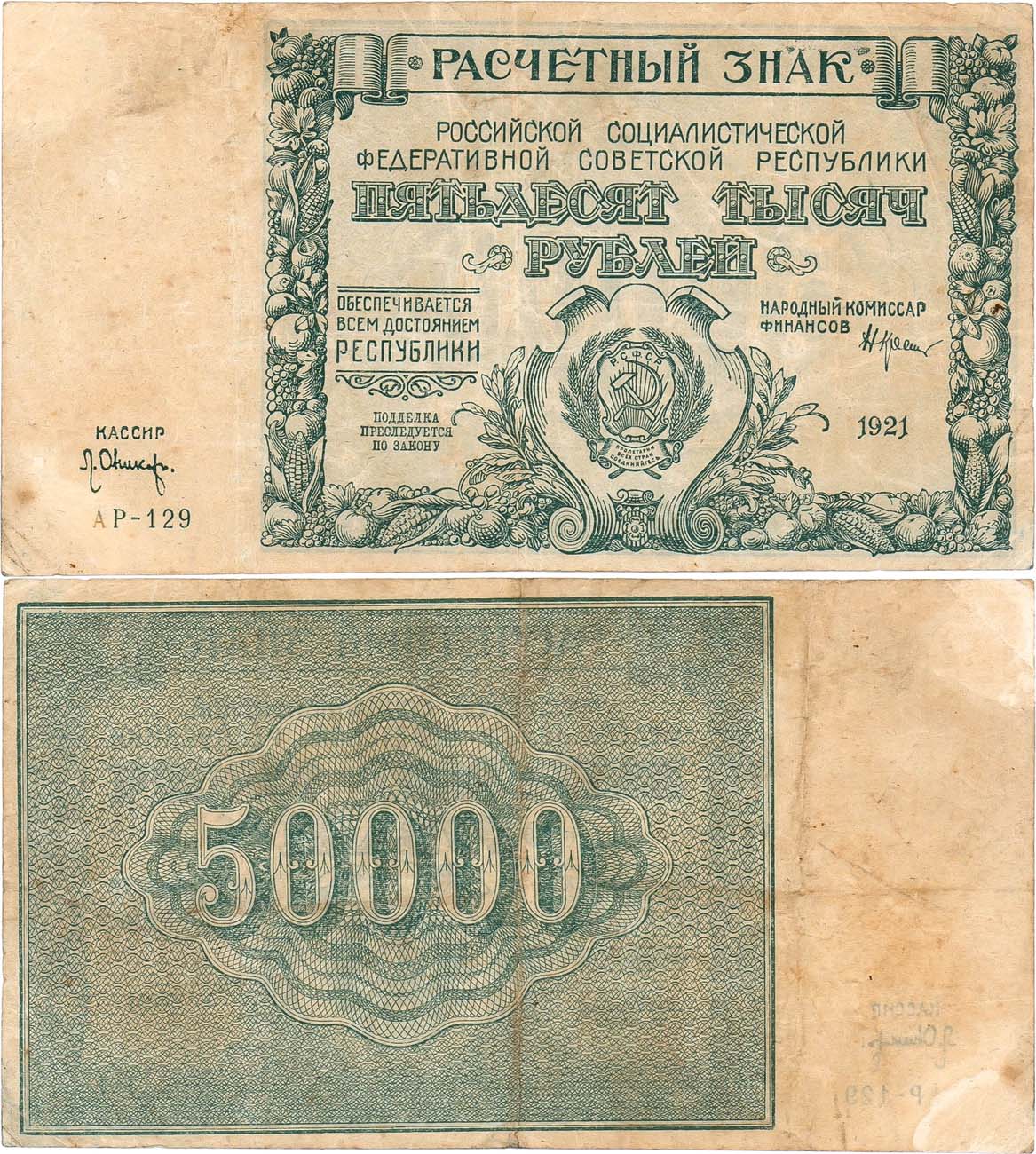 Серия АР-129. Подписи: Нарком Финансов - Н.Н. Крестинский, кассир - Оникер. Фальшивый, бумага без водяных знаков. VF/XF.