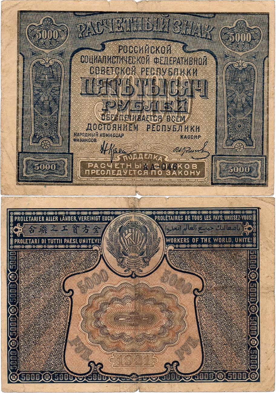 Серия АА-046. Подписи: Крестинский/Колосов. Без ошибки в слове PROLETARIER. ZG2 №2.6.23. Pick 113. VF.
