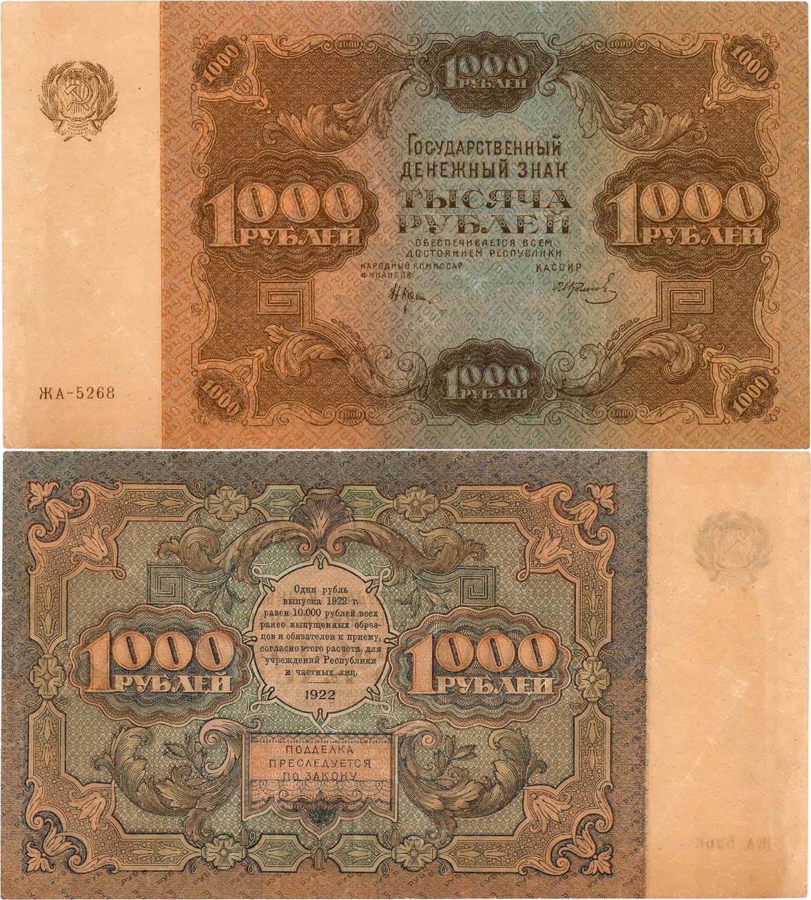 Серия ЖА-5268. Подписи: Крестинский/Колосов. ZG2№2.7.10. VF/XF.