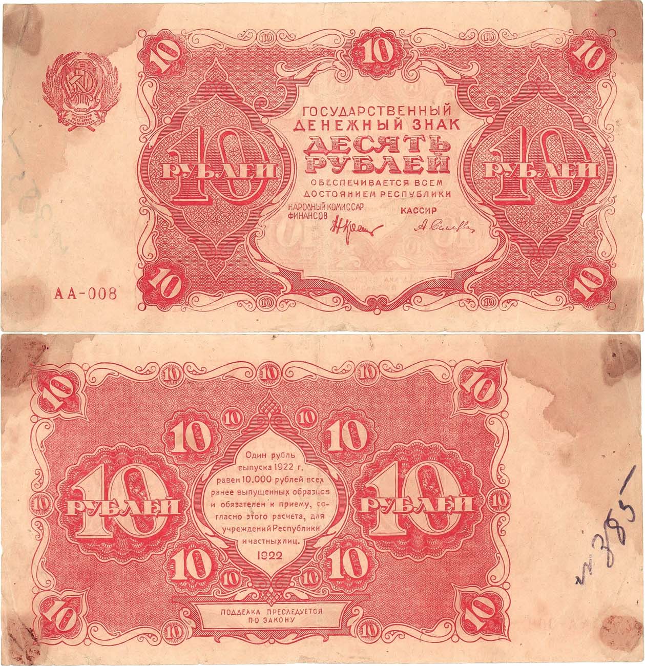 Серия АА-008. Подписи: Крестинский/Редкий кассир А. Селляво. ZG2№ 2.7.4. Жёлтая бумага. VF.
