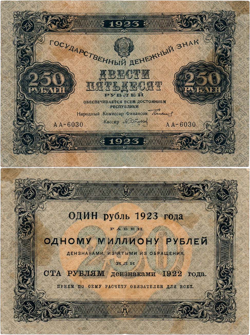 Серия АА-6030. Подписи: Сокольников/Сапунов. ZG2 №2.9.19. VF/XF.