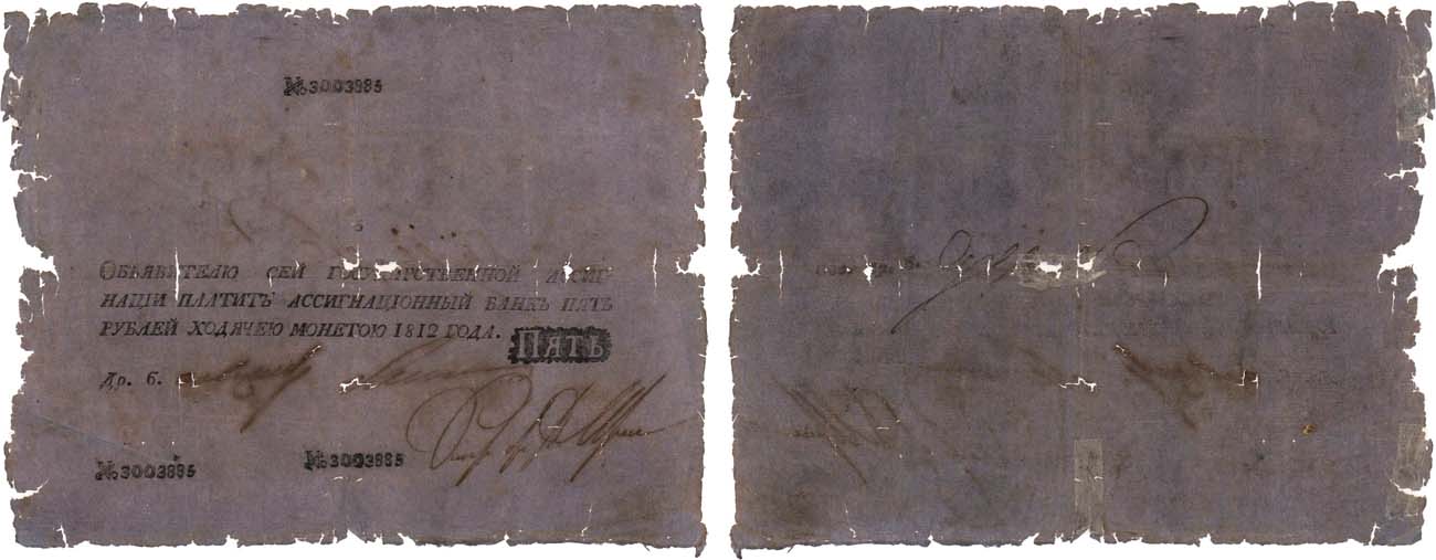 По данным Корпуса Российских Ассигнаций 1769-1843 гг., известно 67 экземпляров банкнот данного типа. Номер данной ассигнации отсутствует.