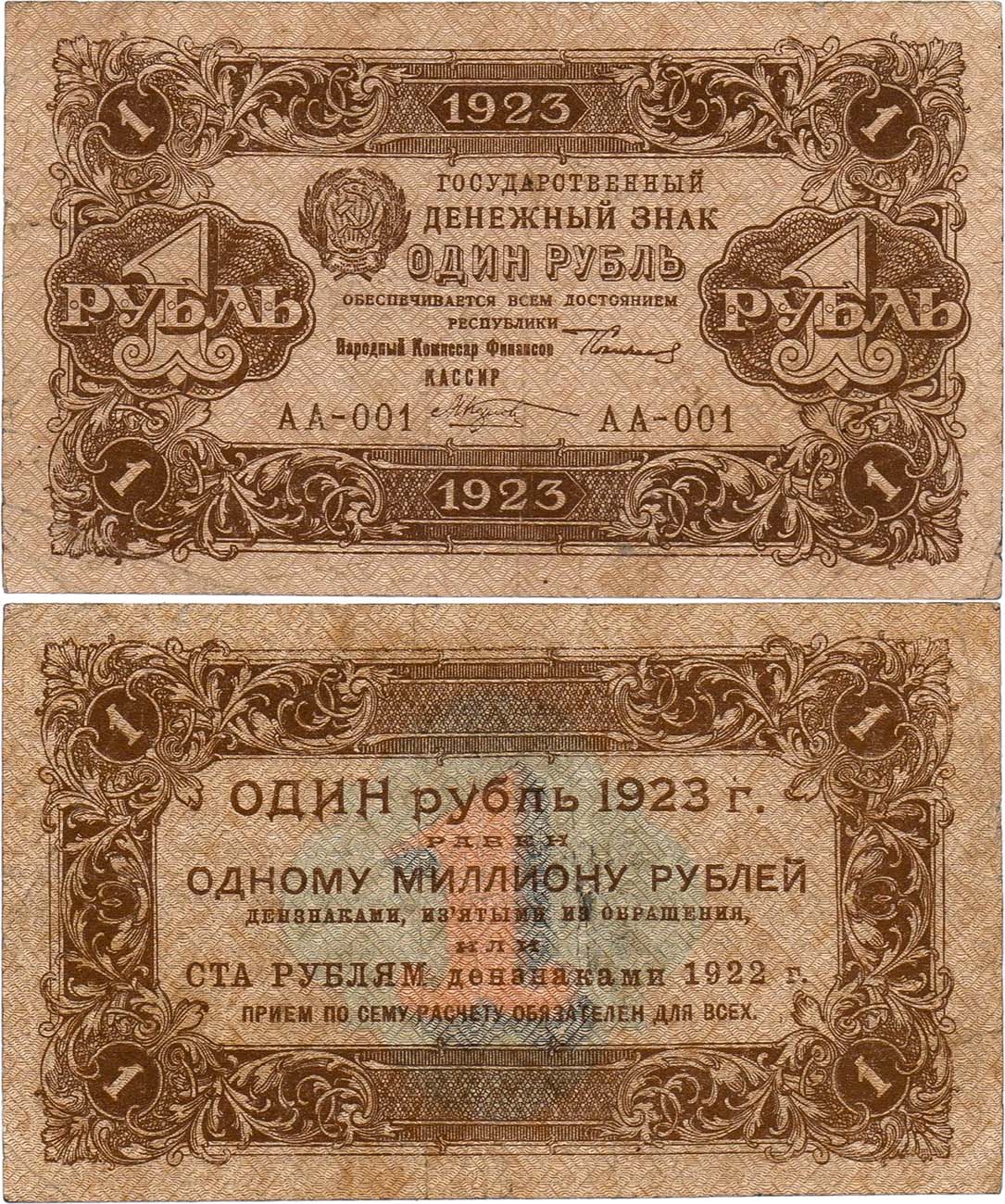 Серия АА-001. Водяной знак: "Теневые квадраты". Подписи: Сокольников/Козлов. ZG2 №2.9.3. VF.