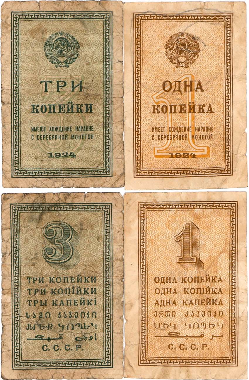 1 копейка 1924 года. Разменная бона. ZG2.№2.20.1. 3 копейки 1924 года. Разменная бона. ZG2.№2.20.3. VF.