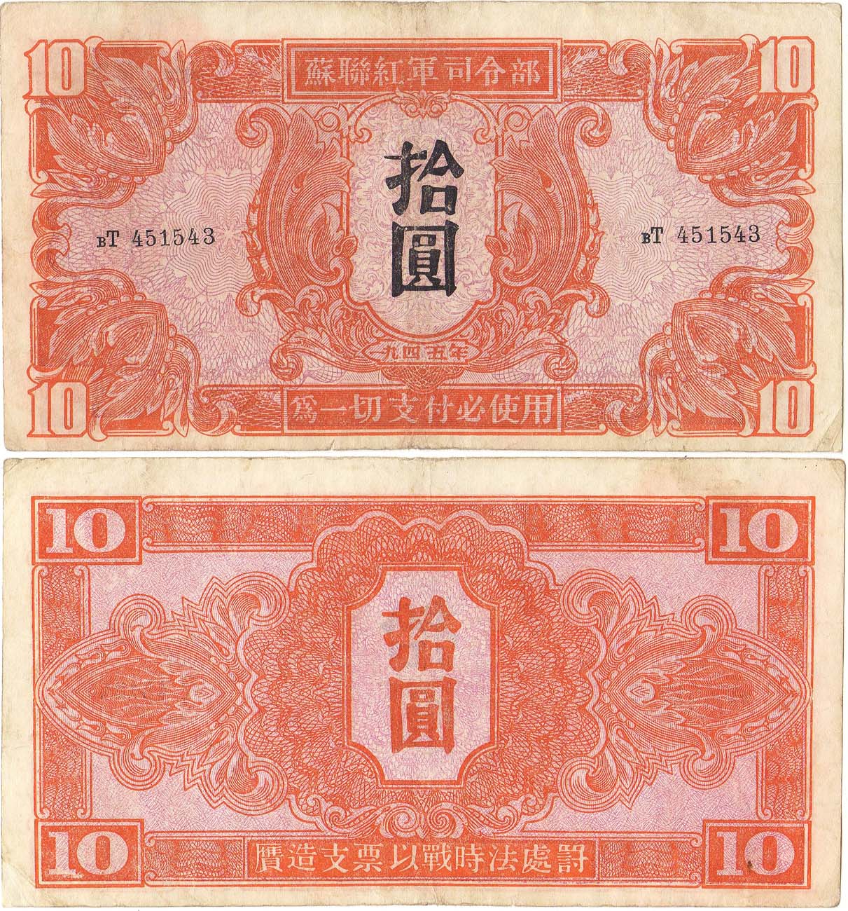 Серия вТ №451543. Штаб Советской Красной Армии (на китайском языке). Отпечатаны в СССР. Кардаков №XIV.9.3 (2 дойчмарки). VF/VF+.