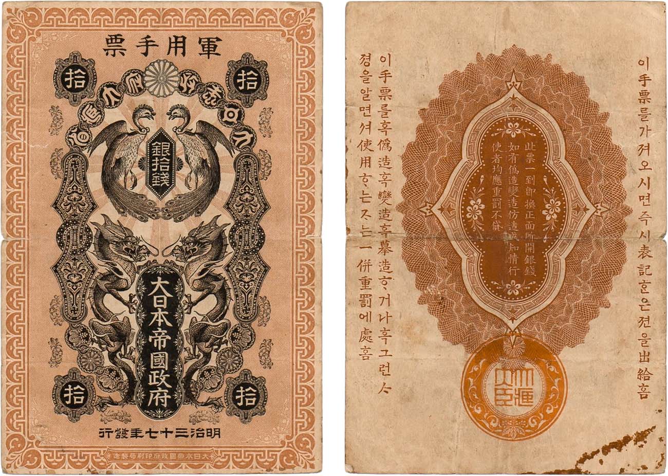 С номером и серией на оборотной стороне. На Японском и Корейском языках. Рябченко 10610р. VF.