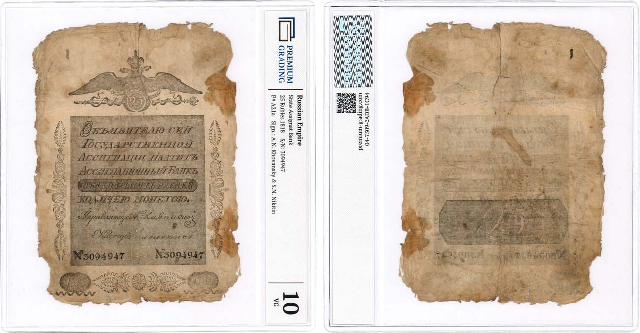 №3094947. Управляющий: князь А.Н. Хованский, кассир: Никитин. Первый год выпуска ассигнаций нового типа. Кардаков I.1.244 (40 дойчмарок). ZG2.№1.5.40. Pick A21a. 10 VG.