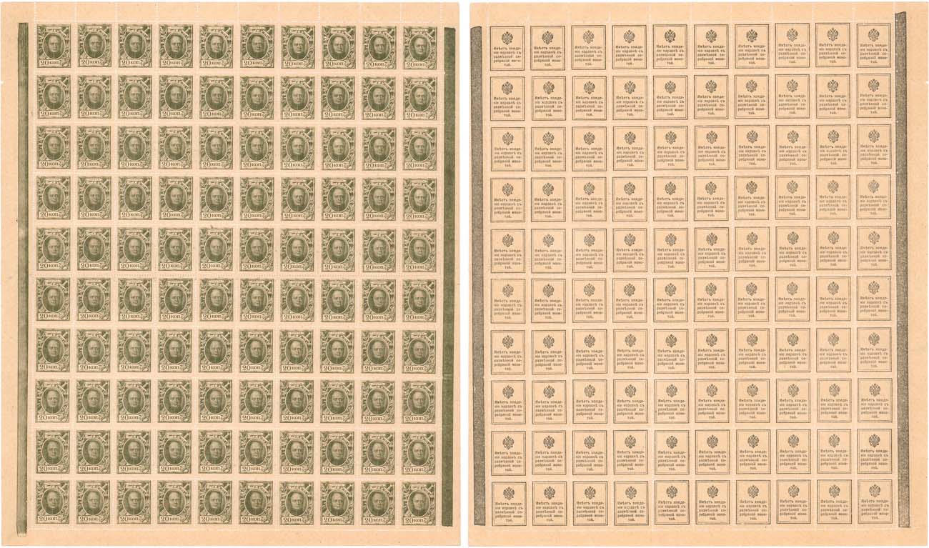 Перфорация не нарушена. След перегиба верхнего правого угла. Следы технологических надрывов по верхнему краю.
