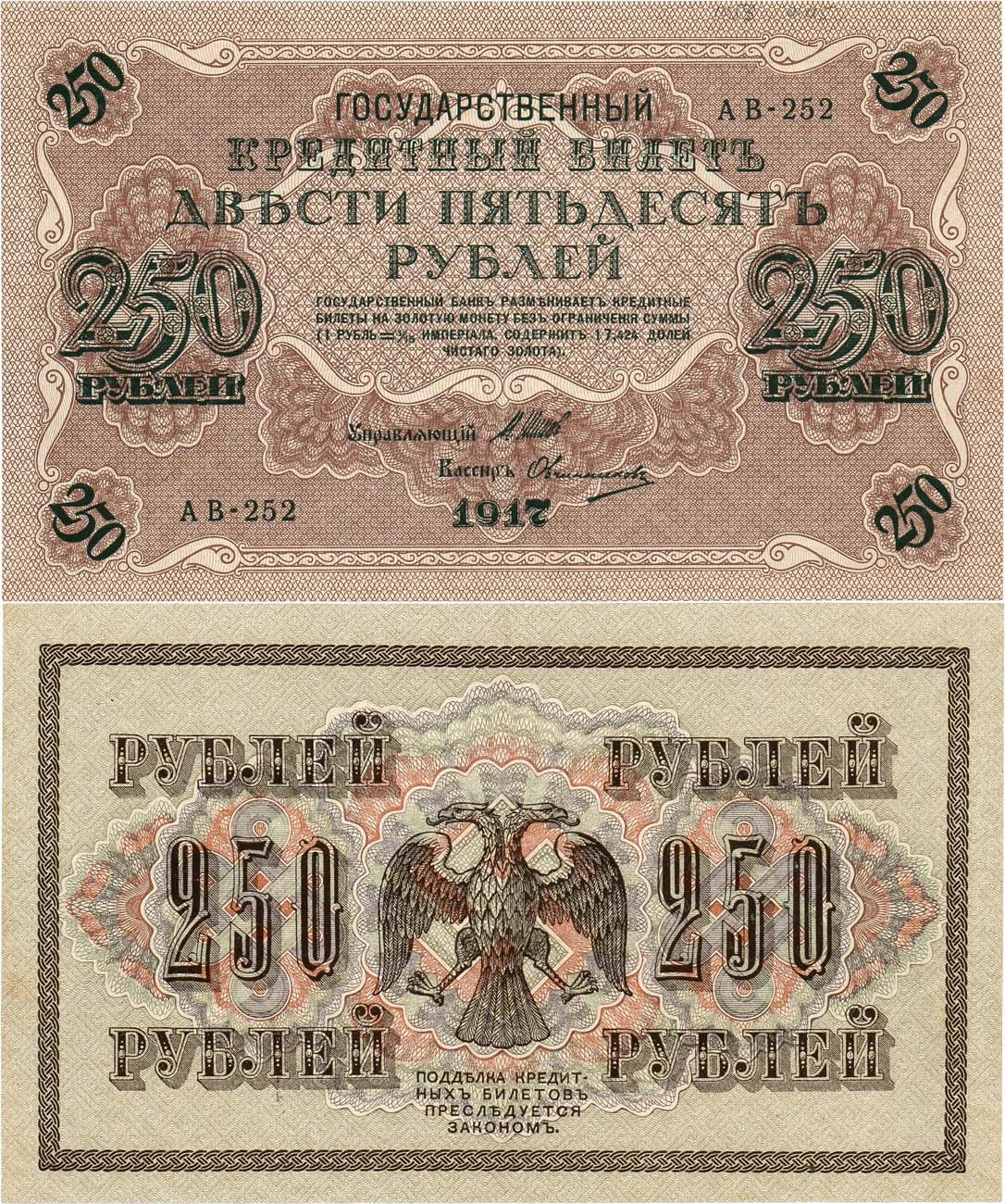 Серия АВ-252. Выпуск Советского правительства 1917-1918 годов. Управляющий И.П. Шипов. Кассир: Овчинников. ZG2 №1.22.2. XF.