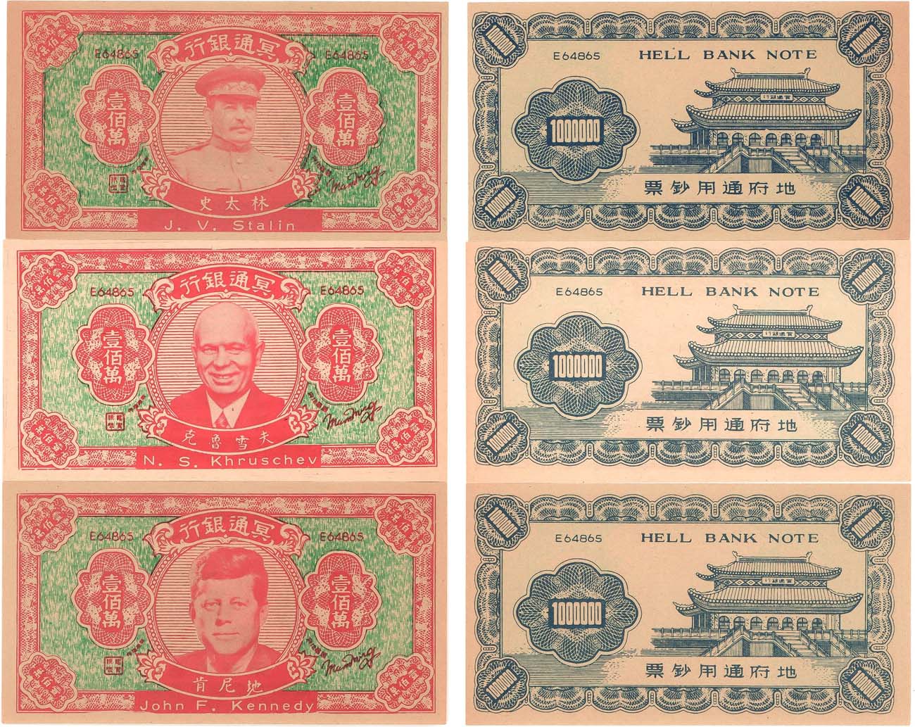 Китай. Лот из 3 бон Hell Bank Note (Сталин, Хрущёв, Кеннеди).