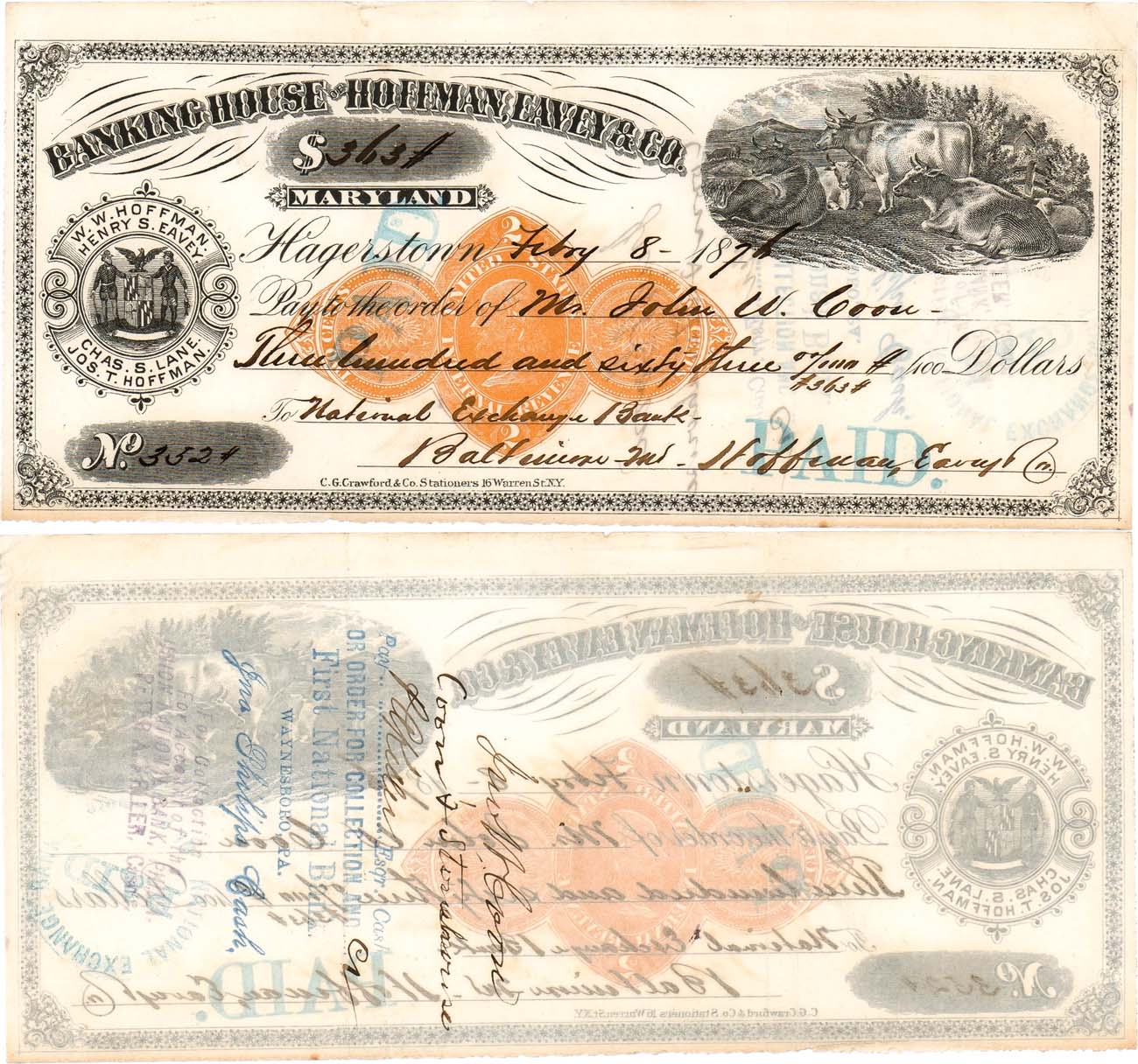№3524. 8 февраля 1876 года. С печатью на оборотной стороне Первого Национального банка. XF-.