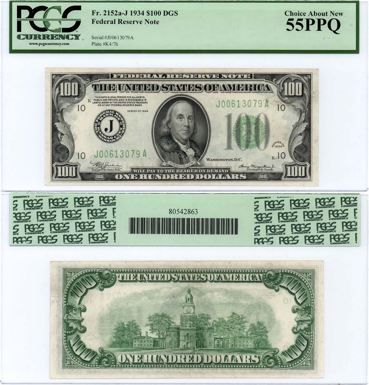 Серия J 00613079 A. Federal Reserve Note. Штат Миссури, город Канзас сити. Friedberg 2152a-J. 55 PPQ Choice About New.