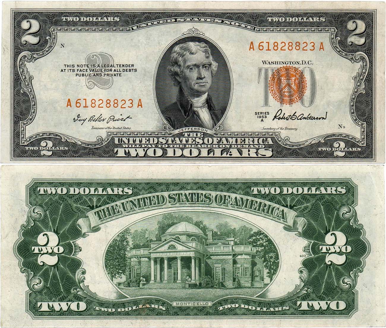 Серия 1953A. Подписи: Priest & Anderson. № А61828823А. Президент Томас Джефферсон. Pick 380a. VF.